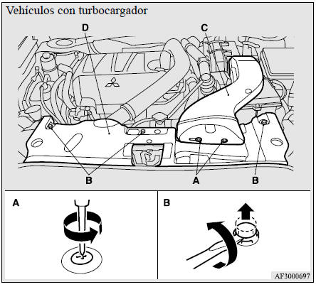 Para conservar el valor de su vehículo, realice operaciones de mantenimiento periódicas utilizando los procedimientos y los materiales adecuados. Asegúrese de utilizar solamente los materiales y procedimientos que cumplan con los reglamentos locales de control de la contaminación ambiental. Elija los materiales que utilizará cuidadosamente para asegurarse de que no contengan corrosivos. Si no está seguro, comuníquese con un Distribuidor autorizado Mitsubishi para obtener ayuda al elegir los materiales.