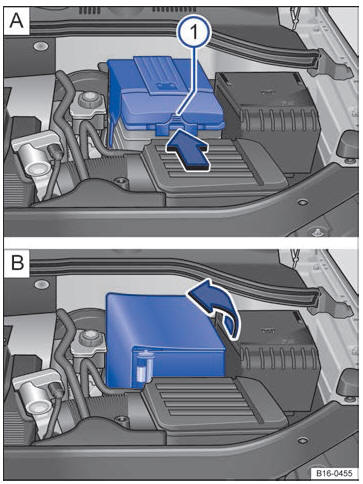 En función del equipamiento, la cubierta de la batería de 12 voltios puede ser una cubierta fija de plástico o una cubierta guardapolvo plegable.